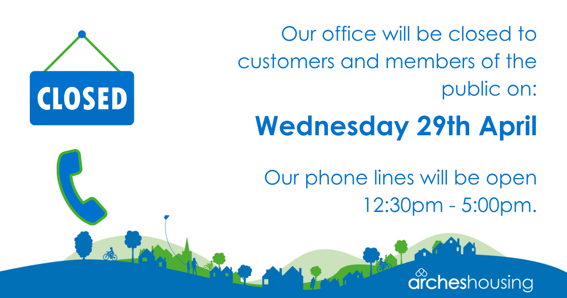 The office will be closed on Wednesday 22th April 2026 due to essential maintenance work. The phone lines will be open 12.30pm - 5pm.